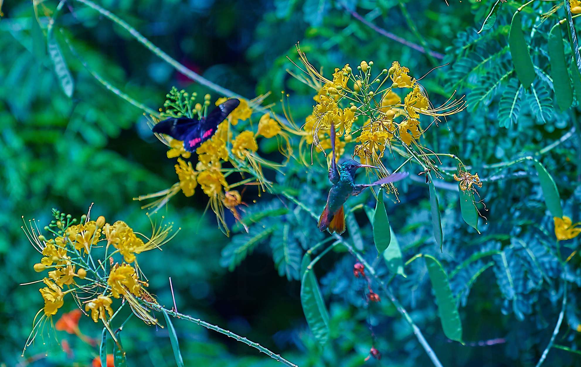 COLIBRI Y MARIPOSA VOLANDO