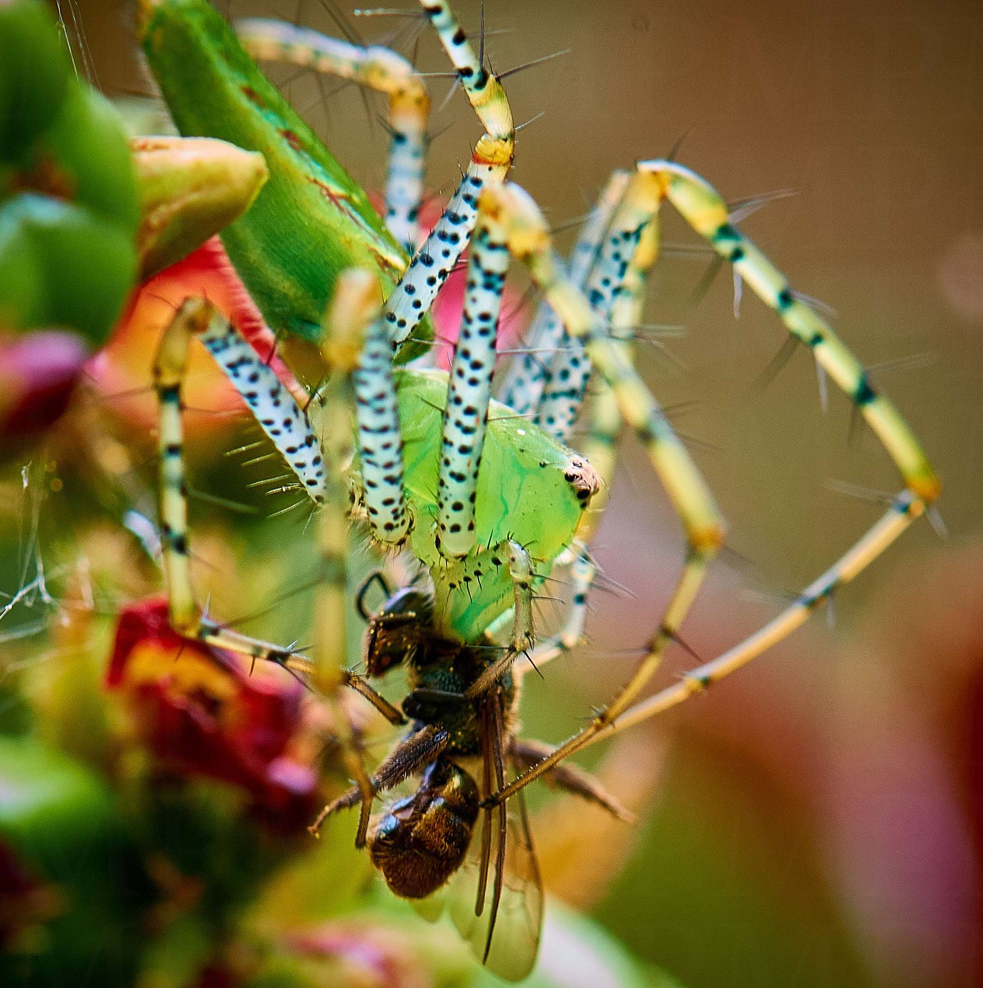 ARAÑA COMIENDOSE UNA ABEJITA